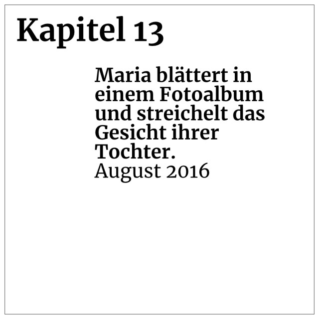 Kapitel 13: Maria blättert in einem Fotoalbum und streichelt das Gesicht ihrer Tochter. (August 2016)