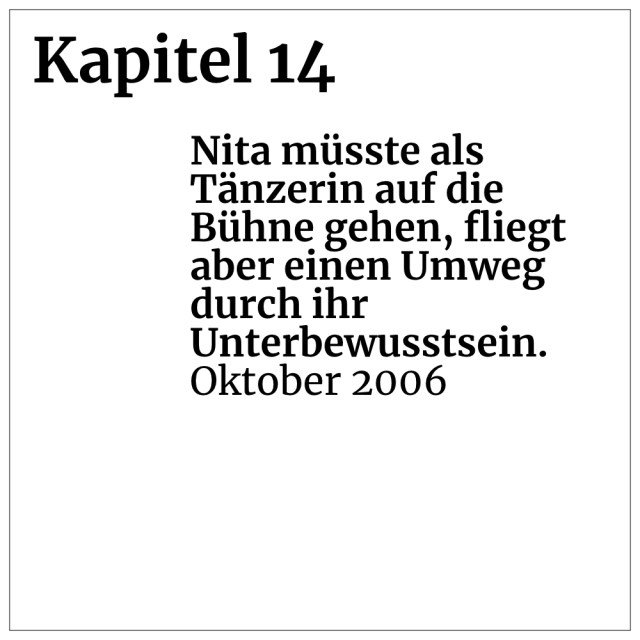 Kapitel 14: Nita müsste als Tänzerin auf die Bühne gehen, fliegt aber einen Umweg durch ihr Unterbewusstsein. (Oktober 2006)