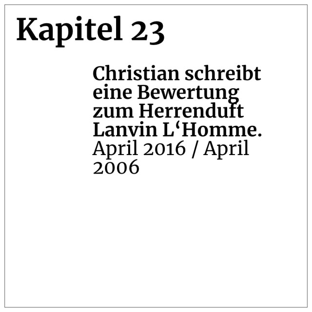 Kapitel 23: Christian schreibt eine Bewertung zum Herrenduft Lanvin L‘Homme. (April 2016 / April 2006)